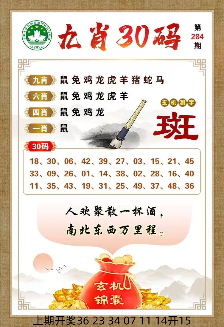 280期: 段数中特【33------46】开:猪31错